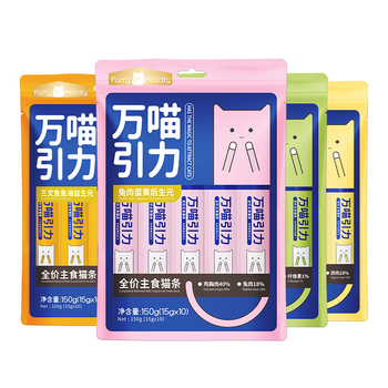 FurryFelicity yüksek kalite tavuk somon orkinos aromalı Protein et sopa aperatifler islak gıda davranır kediler için kutu ambalaj